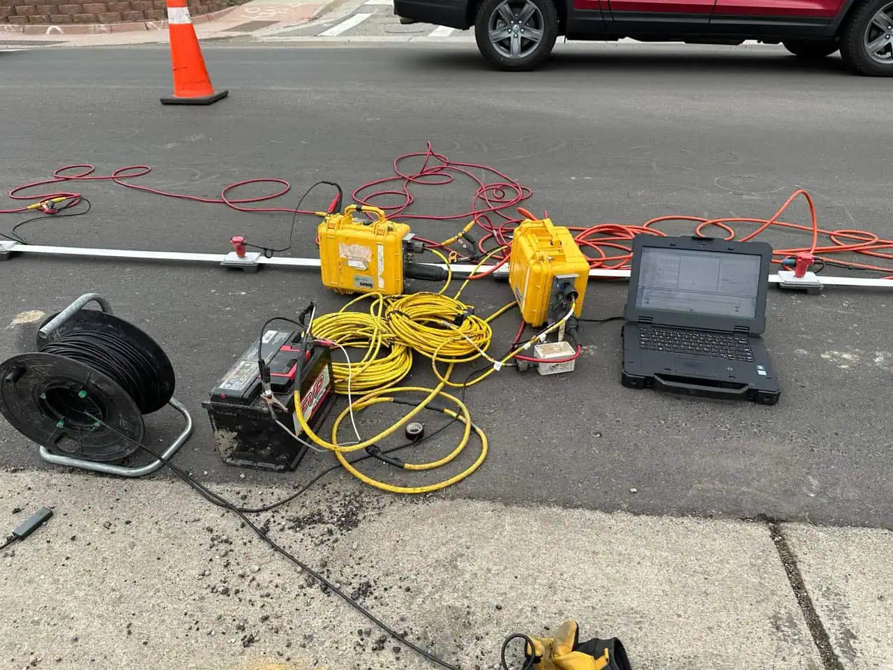 Olson Engineering conducted geophysics investigations in Colorado to examine stability of an area around a recently backfilled sinkhole over asphalt pavement.